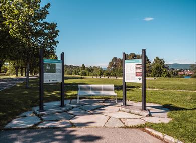 The Cultural Trail "Hjellevannet rundt" follows the shores of Hjellevannet in the central parts of Skien, passing through industrial and commercial areas on Klosterøya, Herkules, and Myren, along the beautiful natural environment of Bakkestranda, and over several bridges.