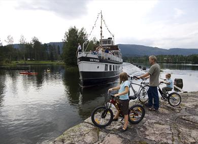 Hogga sluser har to kamre som løfter båten sju meter, fra 65 m.o.h. til 72 m.o.h. Det er…