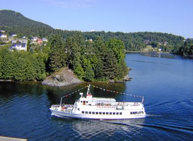 M/S Telemarken was built at Västerviks new varv in Sweden in 1951 and was one of the boats in the Stockholm archipelago. The boat's first name was M/S Freja and was eventually renamed to M/S Karson. In 1988 the boat was put into operation on the Telemark Canal with the name M/S Telemarken, after one of the former canal boats. The boat is 26 m long, 5.6 m wide and 1.6 m deep ball. M/S Telemarken can take 140 passengers and operates on a fixed route between Akkerhaugen and Lunde. The boat is owned by Telemark AS and Norsjø Hotel.