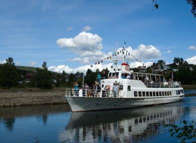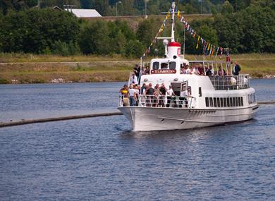 MS Telemarken is one of 3 boats that go on schedule on the Telemark Canal during the summer season mid-June - mid-August. MS Telemarken has 1 departure a day. It starts from Akkerhaugen pier at Norsjø hotel, via Norsjø Ferieland, further over Norsjø to Ulefoss, where it is unlocked through the canal to Lunde. The boat docks on the bottom of the locking facility in Lunde. Here you have the opportunity to go to look at the locking facility before the boat turns and sails back to Akkerhaugen the same way. Here you can see timetables and prices for MS Telemarken.