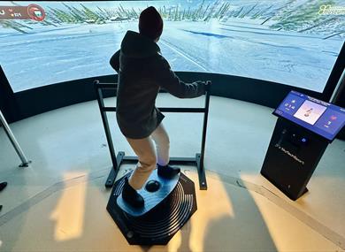 At Norwegian Ski Adventure in Morgedal, you can try the museum’s newest attraction – the ski simulator, which opened in the summer of 2025. Imagine yourself as Sondre Norheim racing down Ordalsåta on skis, from Jåfjell to Nystaul – or perhaps you’d rather choose a snowboard before you set off? The simulator combines excitement and history, offering a fun and educational experience of skiing’s roots.