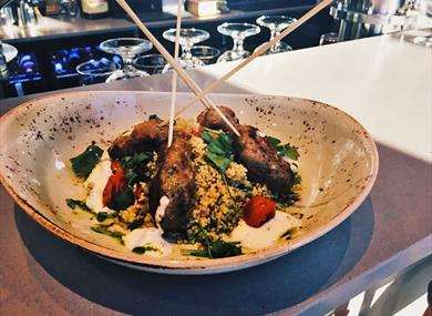 Here you get simple, tasty dishes from around the world. Snacks, main courses and desserts accompanied by a rich drink & bar menu. The focus is on the good experience in a loose and free atmosphere.